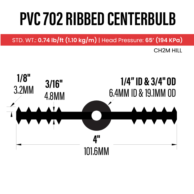 The ribbed centerbulb design of the 702 profile makes it especially well-suited for movement joints, where the ability to accommodate lateral, transverse, and shear movement is essential. The centerbulb geometry flexes with the joint as expansion, contraction, thermal cycling, and structural settlement occur — maintaining a watertight seal without compromising performance. This makes the 702 one of the most versatile and widely specified waterstop profiles available for both new construction and rehabilitation projects.